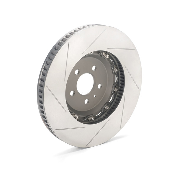 Vibration is reduced as the rotor lateral run-out is kept within 0.03mm and well-balanced: variations are kept within 2 grams. All rotors went through rigorous quality control procedures and inspections to ensure the rotors are fit for their purposes. The floating 2-piece design allows thermal expansion of the rotor while minimizing deformation and ensuring the rotor is self-centered with the pads. A slotted rotor improves braking consistency by maintaining a clean contact surface and dissipate heat generated and gases released when the pads come into contact with the rotors. Slotted rotors have a superior advantage over blank rotors in wet or raining conditions by preventing water films to form between the brake pad and rotor surface. Weighing less than most O.E. rotors while maintaining proper thermal capacity, our 2-piece rotors improves overall handling by saving unsprung mass.