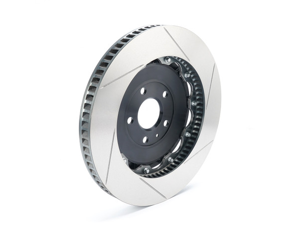Paragon Performance 2-piece Rotor offers superior braking and cooling efficiency optimized for track and race applications. It features directional ventilation vanes to create suction, turbulence, and guides cool air through the rotor for improved heat dissipation and increased resistance to cracking under harsh track condition.