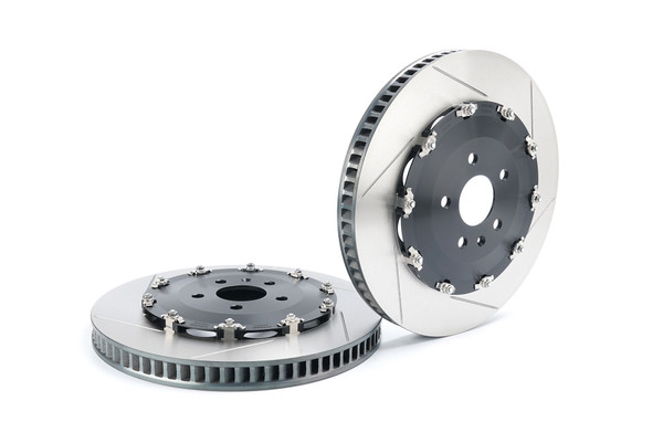 Vibration is reduced as the rotor lateral run-out is kept within 0.03mm and well-balanced: variations are kept within 2 grams. All rotors went through rigorous quality control procedures and inspections to ensure the rotors are fit for their purposes. The fully-floating 2-piece design allows thermal expansion of the rotor while minimizing deformation and ensuring the rotor is self-centered with the pads. A slotted rotor improves braking consistency by maintaining a clean contact surface and dissipate heat generated and gases released when the pads come into contact with the rotors. Slotted rotors have a superior advantage over blank rotors in wet or raining conditions by preventing water films to form between the brake pad and rotor surface. Weighing less than most O.E. rotors while maintaining proper thermal capacity, our 2-piece rotors improves overall handling by saving unsprung mass.