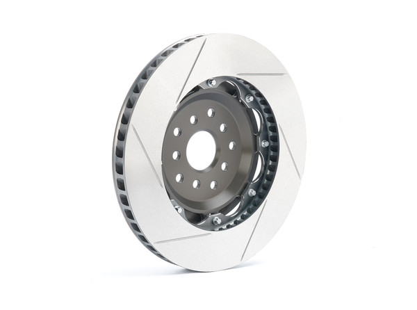Vibration is reduced as the rotor lateral run-out is kept within 0.03mm and well-balanced: variations are kept within 2 grams. All rotors went through rigorous quality control procedures and inspections to ensure the rotors are fit for their purposes. The fully-floating 2-piece design allows thermal expansion of the rotor while minimizing deformation and ensuring the rotor is self-centered with the pads. A slotted rotor improves braking consistency by maintaining a clean contact surface and dissipate heat generated and gases released when the pads come into contact with the rotors. Slotted rotors have a superior advantage over blank rotors in wet or raining conditions by preventing water films to form between the brake pad and rotor surface. Weighing less than most O.E. rotors while maintaining proper thermal capacity, our 2-piece rotors improves overall handling by saving unsprung mass.
