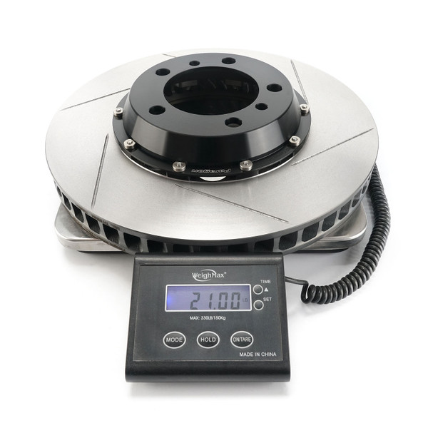 Vibration is reduced as the rotor lateral run-out is kept within 0.03mm and well-balanced: variations are kept within 2 grams. All rotors went through rigorous quality control procedures and inspections to ensure the rotors are fit for their purposes. The floating 2-piece design allows thermal expansion of the rotor while minimizing deformation and ensuring the rotor is self-centered with the pads. A slotted rotor improves braking consistency by maintaining a clean contact surface and dissipate heat generated and gases released when the pads come into contact with the rotors. Slotted rotors have a superior advantage over blank rotors in wet or raining conditions by preventing water films to form between the brake pad and rotor surface. Weighing less than most O.E. rotors while maintaining proper thermal capacity, our 2-piece rotors improves overall handling by saving unsprung mass.