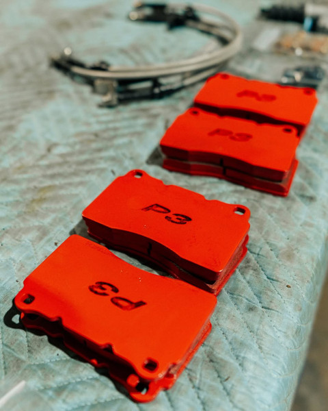 The P3 “Road & Track” compound is an all round compound ideal for sport driving, autocross, and light track duty while still maintaining street drivability. Low level of brake dust and noise. Good coefficient of friction, initial bite, and temperature range make this compound capable for track conditions. Best modulation and control characteristics among P series compounds. Great choice for occasional track vehicles without the disadvantages of dedicated track pads. Works as designed from ambient temperature. Great rear pad option for those who prefer a more front biased setup with the R5 compound up front.