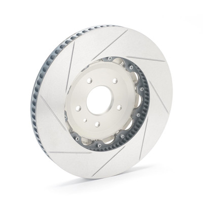 Features 72 directional ventilation vanes to create suction and turbulence, and guide cool air through the rotor to achieve better heat dissipation and increased resistance to cracking under harsh track conditions. Each rotor is left or right side specific, and the ventilation vanes are optimized to spin in a particular direction to pump the maximum amount of cool air through the rotor. This design allows the rotor to run up to 30% cooler than O.E. rotors and increases cooling efficiency by up to 30% over standard 1-piece units. Brake fade and judder are minimized during extended sessions. This means the brake system can withstand heavier track usage and provide consistent braking performance lap after lap.